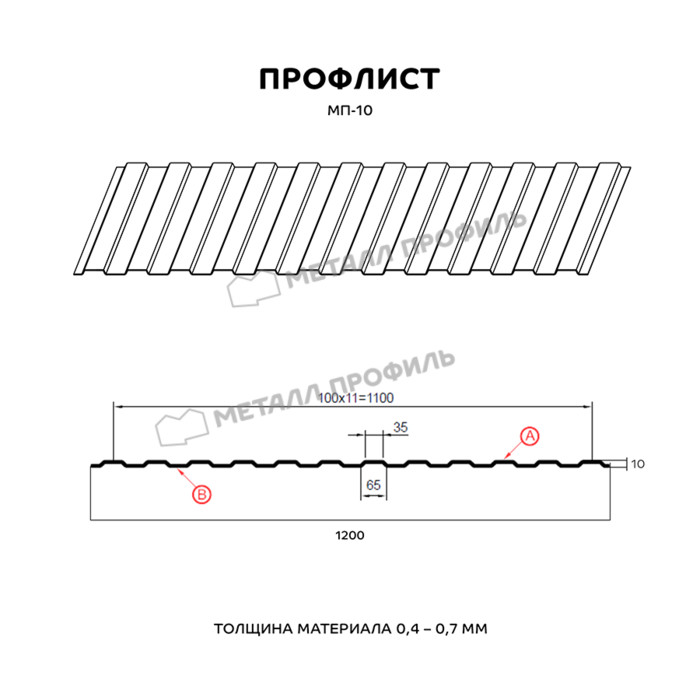 Профлист Металл Профиль МП-10 0,5 VikingMP® E RAL 8019 Серо-коричневый | B